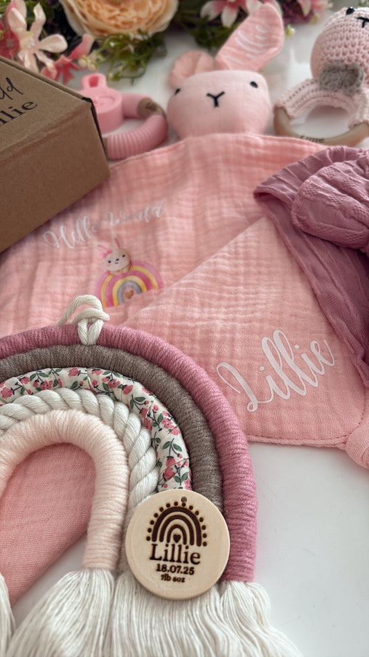 Hello World, Little Girl – Pink Macrame Rainbow