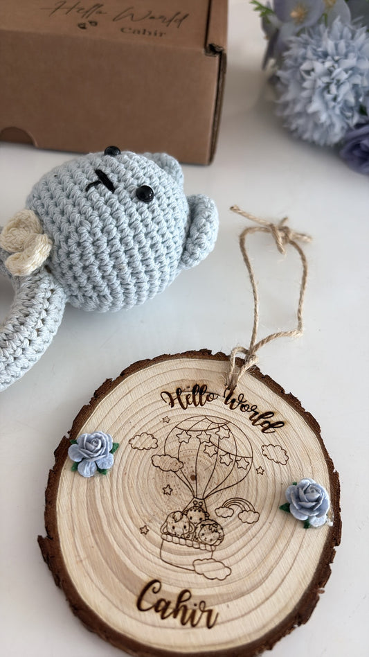 Hello World Baby Boy Personalised Wooden Engraved Disc