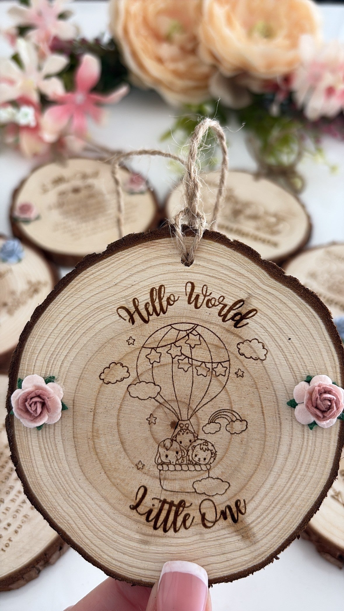 Celebrate the arrival of your precious baby girl with our beautifully crafted Hello World Little girl wooden engraved disc. Made from premium natural wood, this charming keepsake features elegant laser engraving with the words “Hello World” alongside a sweet little girl design.